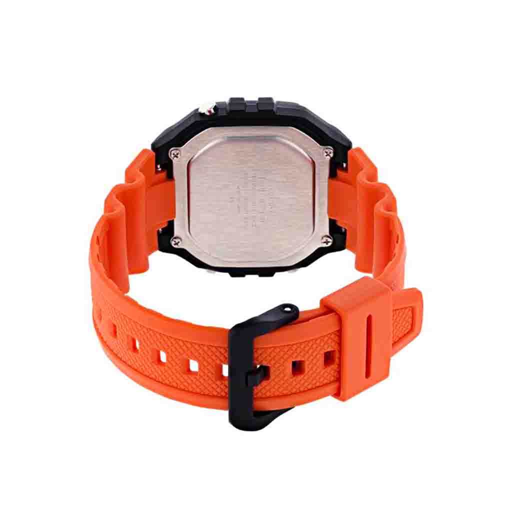 Reloj Casio Digital W-218h-4b2vcf Naranja Retro Conserva esa esencia nostálgica pero con un cuerpo más robusto y una pantalla mucho más legible. Es perfecto para quienes buscan un accesorio que aguante el uso rudo sin perder el toque de moda streetwear.