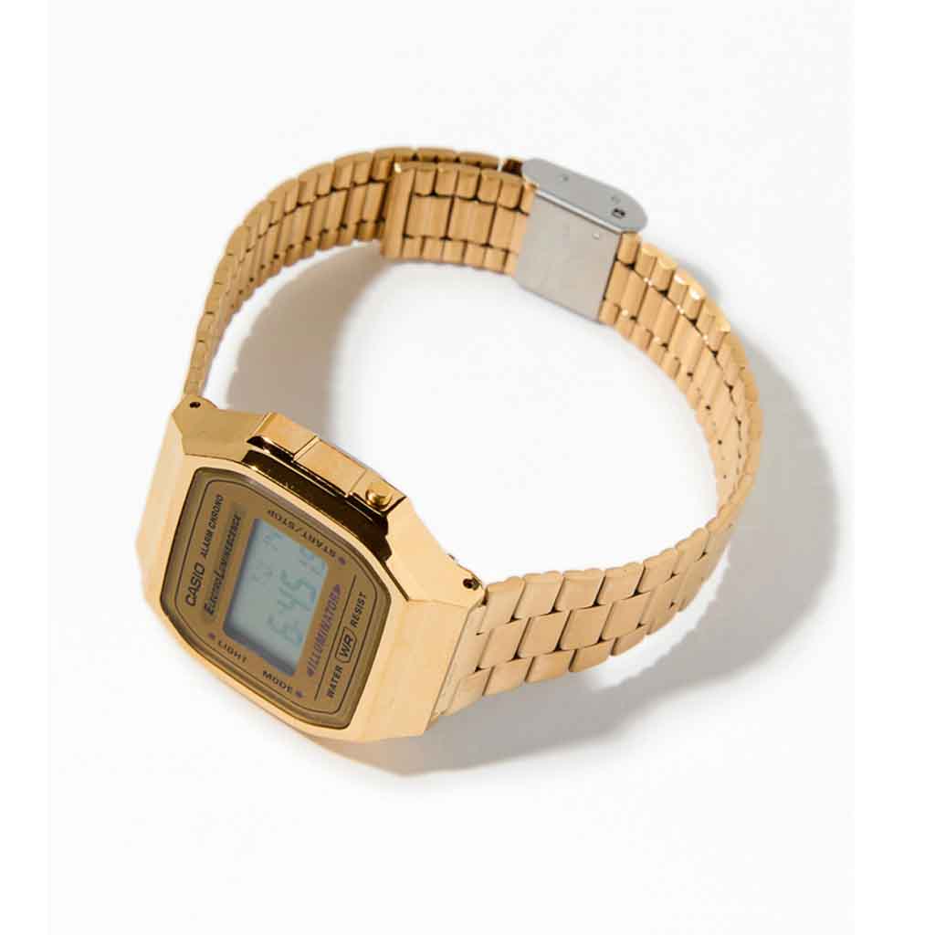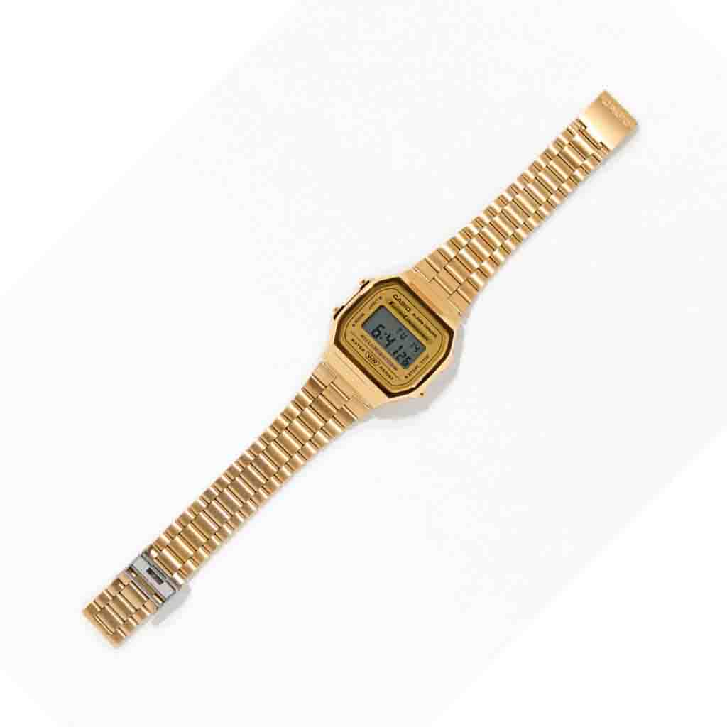 Reloj Casio Digital A168WG-9VT Su acabado “Total Gold” le otorga una presencia lujosa y llamativa, mientras que su tecnología ElectroLuminescence asegura que la hora sea visible incluso en la oscuridad total con un brillo uniforme. Es la opción predilecta para quienes buscan un toque vintage auténtico que destaque en cualquier outfit, desde lo casual hasta lo más formal.