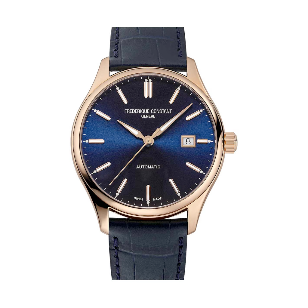 Elegante y refinado, este reloj automático clásico combina una caja de acero con recubrimiento en tono oro rosa y una esfera verde profunda, creando un diseño sobrio pero distintivo. Cuenta con un movimiento mecánico automático (calibre FC-304) que también ofrece día de la semana y fecha. El cristal de zafiro protege la carátula, mientras que la correa de piel marrón le da un aire atemporal. Resistente al agua hasta 50 m (5 ATM), es una pieza versátil y sofisticada, ideal para quienes buscan una combinación de estilo tradicional y funcionamiento confiable.
